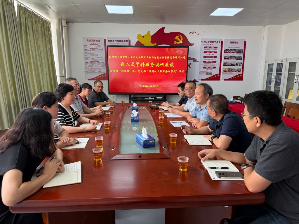4月16日,图书馆(档案馆)党总支书记雷尊敏带领第一党支部部分党员前往低空学院,开展结对共建嵌入式学科服务调研暨“送科技文献服务到学院”系列活动。低空学院党委书记温兆麟、院长田雨波出席活动。