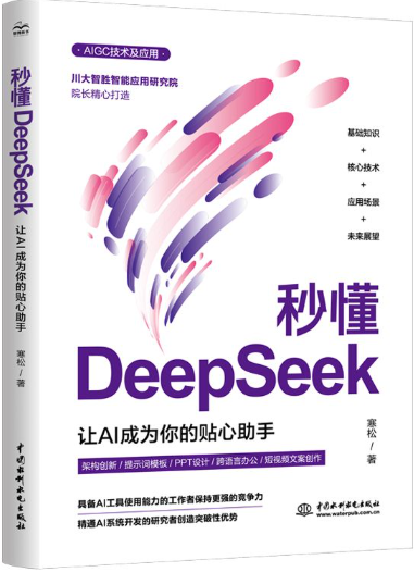 简介:该书以“基础知识+核心技术+应用场景+未来展望”为脉络,从DeepSeek架构创新讲起,聚焦提示词模板设计、PPT制作、跨语言办公、短视频文案创作等实操场景,用通俗案例拆解AI工具的高效使用方法。书中既有面向普通职场人的技能提升技巧,也为AI系统开发者提供技术突破思路,助力不同人群快速掌握DeepSeek的核心能力,在智能时代保持竞争力,让AI真正成为工作与学习中的实用助手。